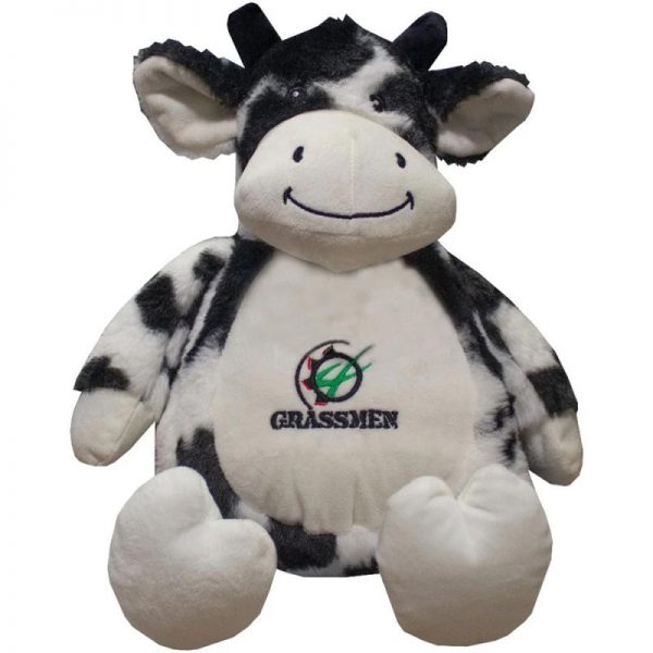 Fiona The Friesian Cow Plush Teddy Product Overview: Meet Fiona, the latest “GRASSMEN” mascot, a soft and lovable Friesian cow plush teddy. Fiona is designed to be a cuddly companion for children of all ages, made from high-quality materials that ensure both comfort and durability. Key Features: Material: 100% polyester soft plush, providing a gentle and cozy feel. Design: Fiona features a contrasting nose and horns, along with sewn eyes and mouth for added safety. Embroidered Logo: The white panel on Fiona’s tummy is adorned with a high-quality embroidered “GRASSMEN” logo. Zip Access: The base of the plush has a zip opening, allowing easy removal of the inner stuffing for washing. Safety: Complies with EN71 European Toy Safety regulations, making it safe for children of all ages. Specifications: Height: 35 cm Care Instructions: Remove all hang tags and fasteners before giving this item to a child. The plush can be cleaned by removing the inner stuffing and washing the outer shell. Why You Should Buy: Fiona The Friesian Cow Plush Teddy is not just a toy but a delightful companion for children. Its high-quality materials and thoughtful design ensure it can be a lasting keepsake, perfect for cuddling, playing, and as a decorative piece. The adherence to safety regulations provides peace of mind for parents, making Fiona a wonderful gift for any occasion.