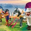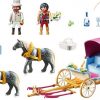 Playmobil Horse Drawn Carriage The prince and princess take a romantic carriage ride followed by a picnic in the castle gardens with the Playmobil Horse Drawn Carriage. This enchanting playset is perfect for kids aged 4 and up, offering endless imaginative play with detailed figures and accessories.Key Features: Romantic Adventure: Includes one princess, one prince, and one coachman, allowing kids to create enchanting stories. Detailed Accessories: Comes with two horses, a horse-drawn carriage with a folding roof and floral decoration, a whip, saddlecloths, collars, sluices, a drawbar, a cylinder with bow, a crown, a collar, a picnic basket, a bouquet of flowers with floral paper, a clutch, a suitcase, two apples, a bottle of sparkling wine with cloth, and two champagne glasses. Imaginative Play: Kids can take the prince and princess on a romantic ride followed by a picnic, encouraging creative storytelling. Product Specifications: Box Dimensions: 11.18 x 7.36 x 3.66 inches Product Dimensions: 12.20 x 4.33 x 4.53 inches Weight: 16.691 ounces Age Recommendation: Recommended for children aged 4 years and up Create magical moments with the Playmobil Horse Drawn Carriage. Available now at Tinneys Toys!